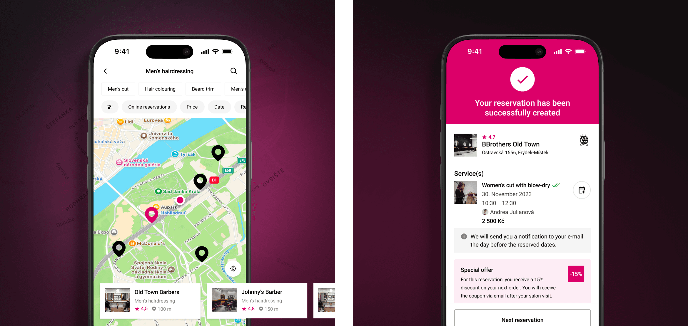 Originally, we were supposed to be involved only in the design and development of the B2B application, Notino Partner. However, it became evident over time that the design of B2C and B2B applications goes hand in hand, and it's challenging to coordinate the entire process when two different teams from two different companies oversee it. As a result, we eventually took charge of the design of the new beauty module in the B2C app, where customers can easily and quickly find services in their vicinity, book appointments online, and add and read service reviews.