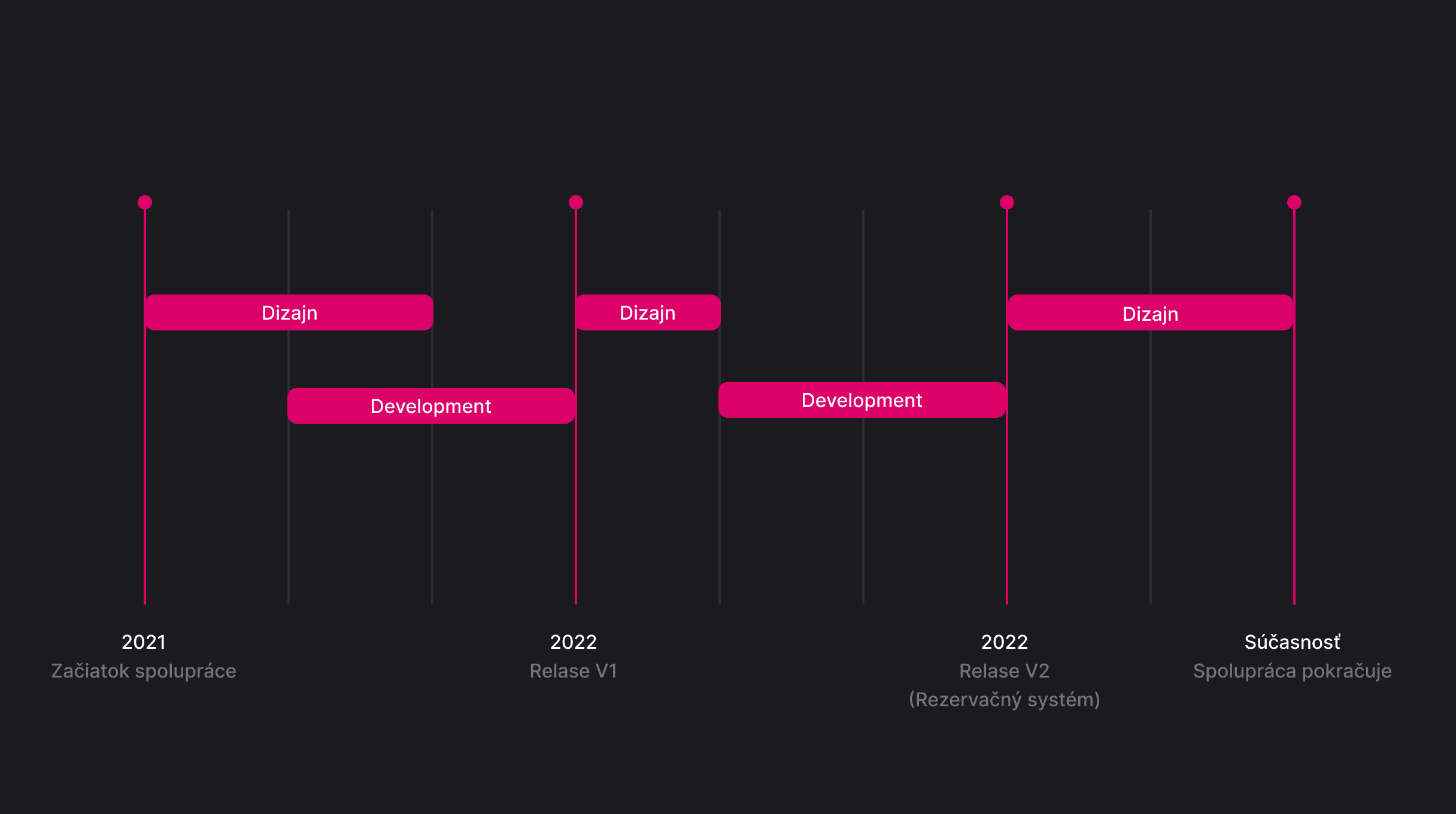 V úvode sme dali hlavy dokopy a veľmi sme si dali záležať na produktovom prístupe a dizajne zameranom na používateľa. Keďže scope projektu bol gigantických rozmerov, navrhli sme ho rozdeliť na 3 menšie releasy, čím sme minimalizovali riziko chýb.